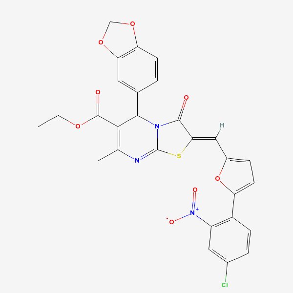 InChI: InChI=1/C28H20ClN3O8S/c1-3-37-27(34)24-14(2)30-28-31(25(24)15-4-8-21-22(10-15)39-13-38-21)26(33)23(41-28)12-17-6-9-20(40-17)18-7-5-16(29)11-19(18)32(35)36/h4-12,25H,3,13H2,1-2H3/b23-12-