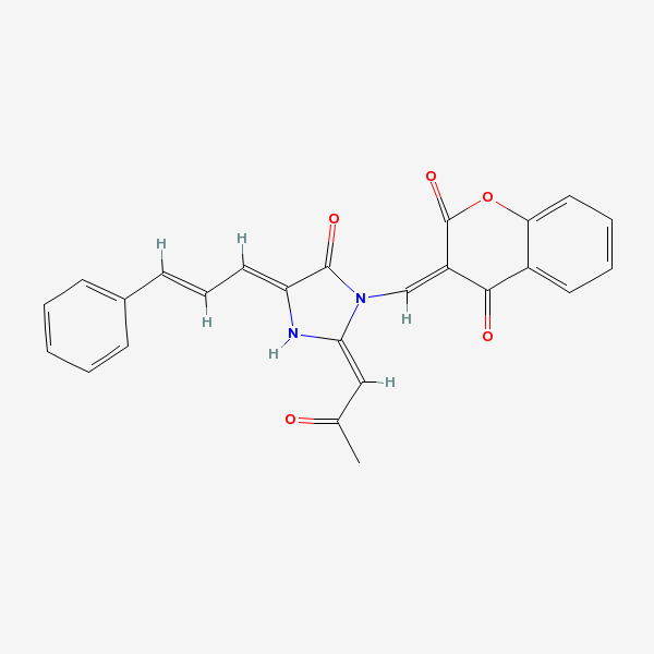 (3Z)-3-[[(2E,4Z)-4-cinnamylidene-5-oxo-2-(2-oxopropylidene)imidazolidin-1-yl]methylidene]chroman-2,4-dione