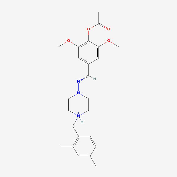 InChI: InChI=1/C24H31N3O4/c1-17-6-7-21(18(2)12-17)16-26-8-10-27(11-9-26)25-15-20-13-22(29-4)24(31-19(3)28)23(14-20)30-5/h6-7,12-15H,8-11,16H2,1-5H3/p+1/fC24H32N3O4/h26H/q+1