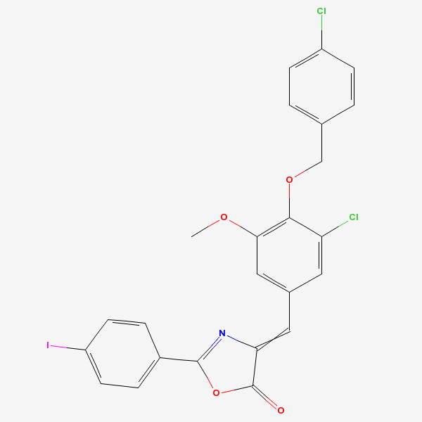 4-[[3-chloro-4-[(4-chlorophenyl)methoxy]-5-methoxy-phenyl]methylidene]-2-(4-iodophenyl)-1,3-oxazol-5-one