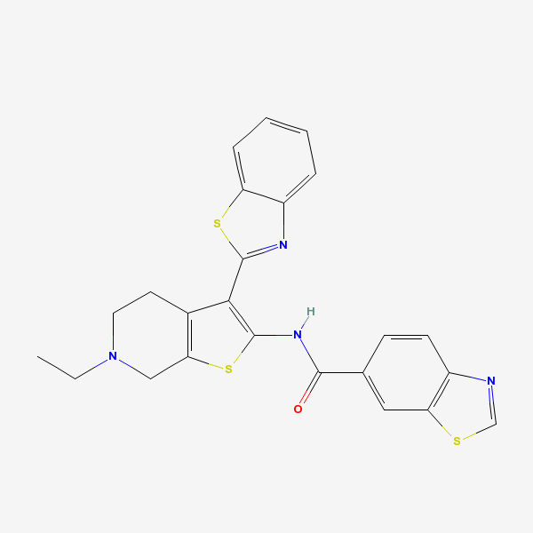 SMILES: CCN1CCC2=C(C1)SC(=C2C3=NC4=CC=CC=C4S3)NC(=O)C5=CC6=C(C=C5)N=CS6