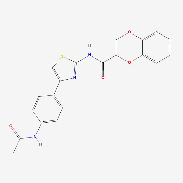 N-[4-(4-acetamidophenyl)-1,3-thiazol-2-yl]-7,10-dioxabicyclo[4.4.0]deca-1,3,5-triene-9-carboxamide