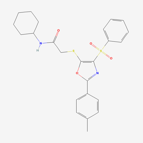 2-[[4-(benzenesulfonyl)-2-(4-methylphenyl)-1,3-oxazol-5-yl]sulfanyl]-N-cyclohexyl-acetamide