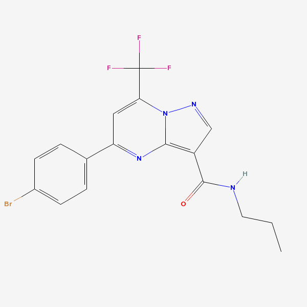 InChI: InChI=1/C17H14BrF3N4O/c1-2-7-22-16(26)12-9-23-25-14(17(19,20)21)8-13(24-15(12)25)10-3-5-11(18)6-4-10/h3-6,8-9H,2,7H2,1H3,(H,22,26)/f/h22H